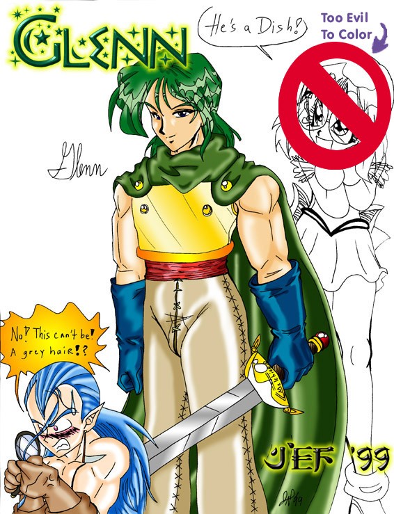 Glenn, Lucca drooling over him, and Magus