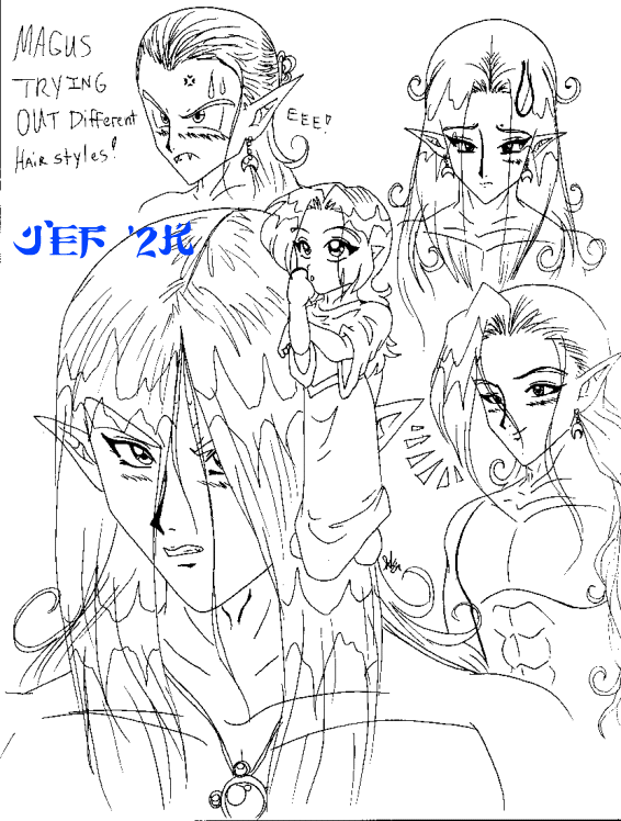 Magus trying out different hairstyles when he was