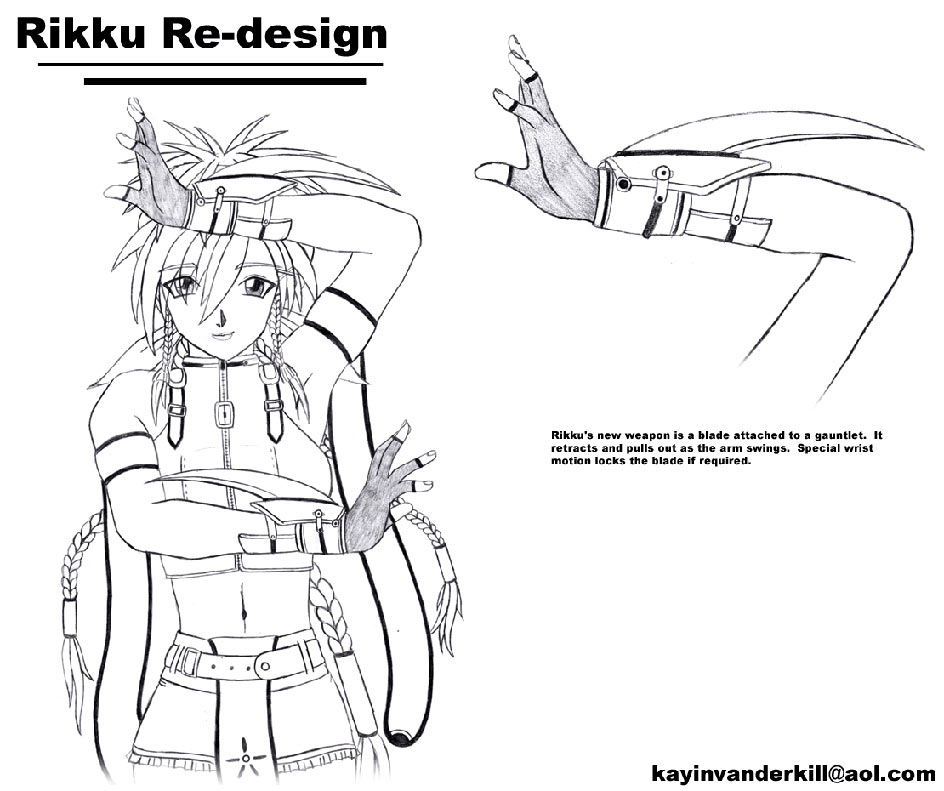 (153 KB) Rikku Re-Design - Body 1 with Notes Sketch (68.3 KB) Rikku Re-Design - Upper Body + Weapon Sketch (90.2 KB) Rikku Re-Design - Anger Expression Large (53.1 KB) |